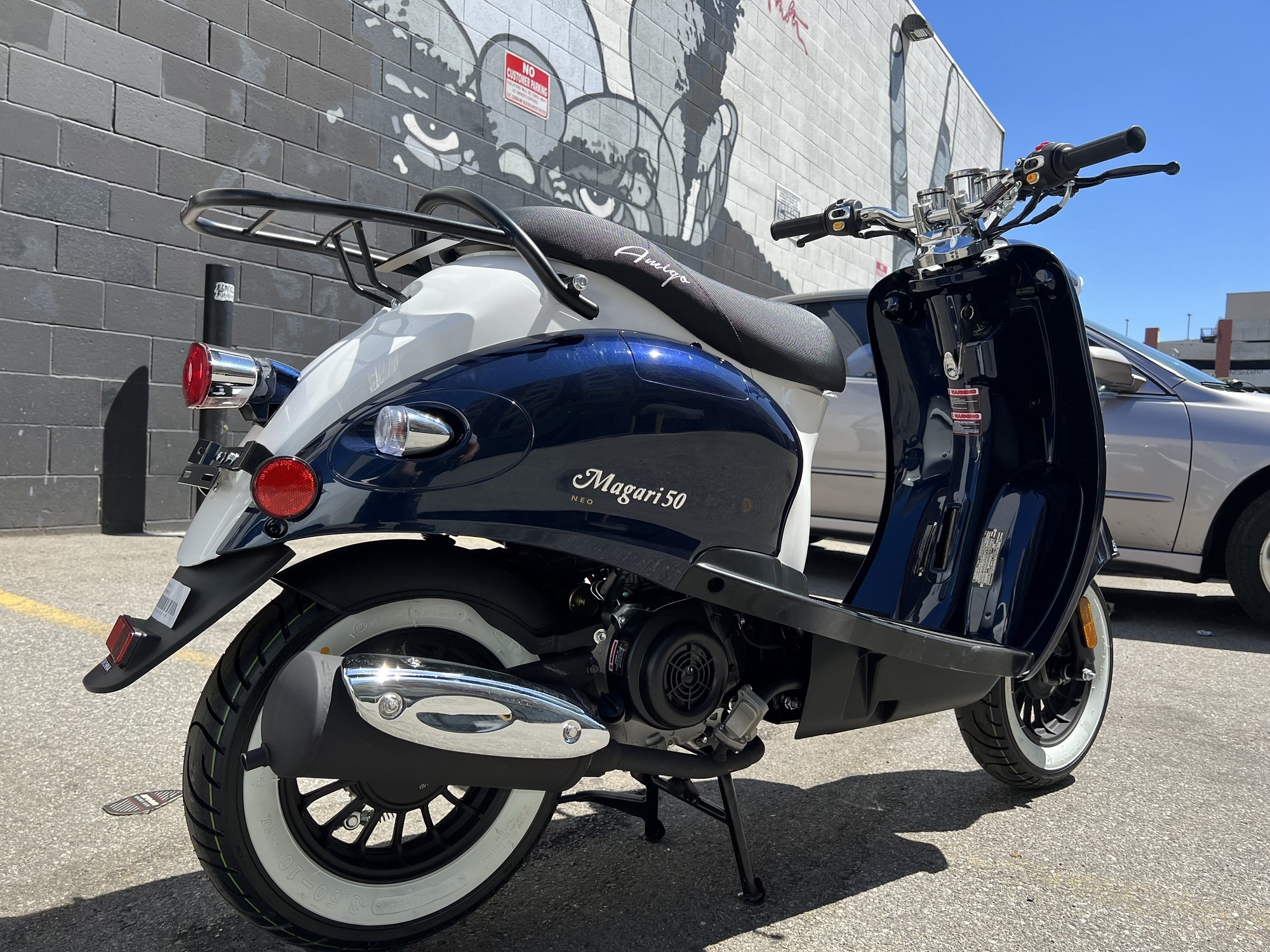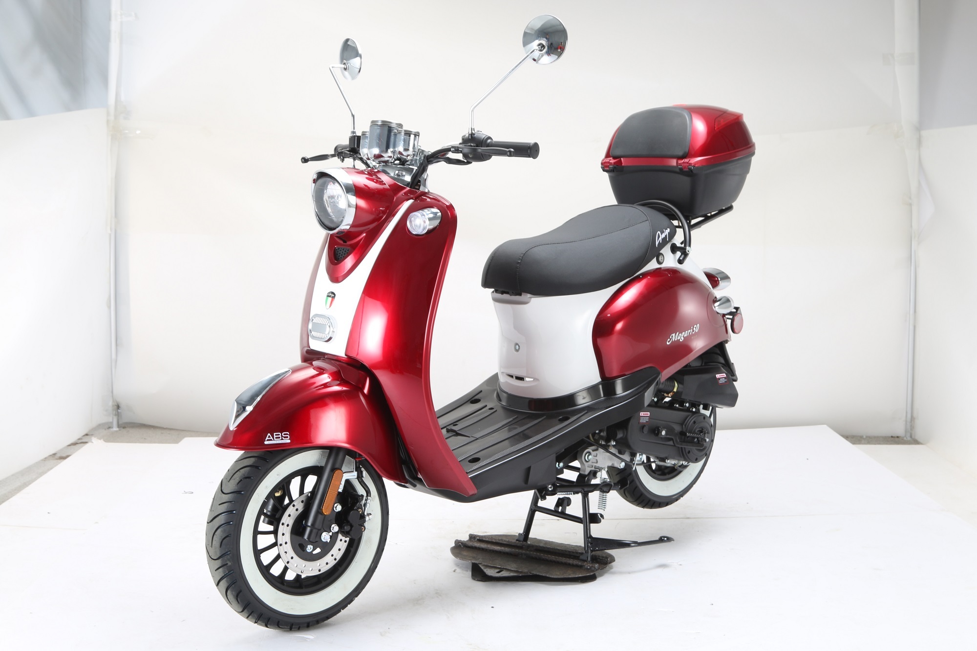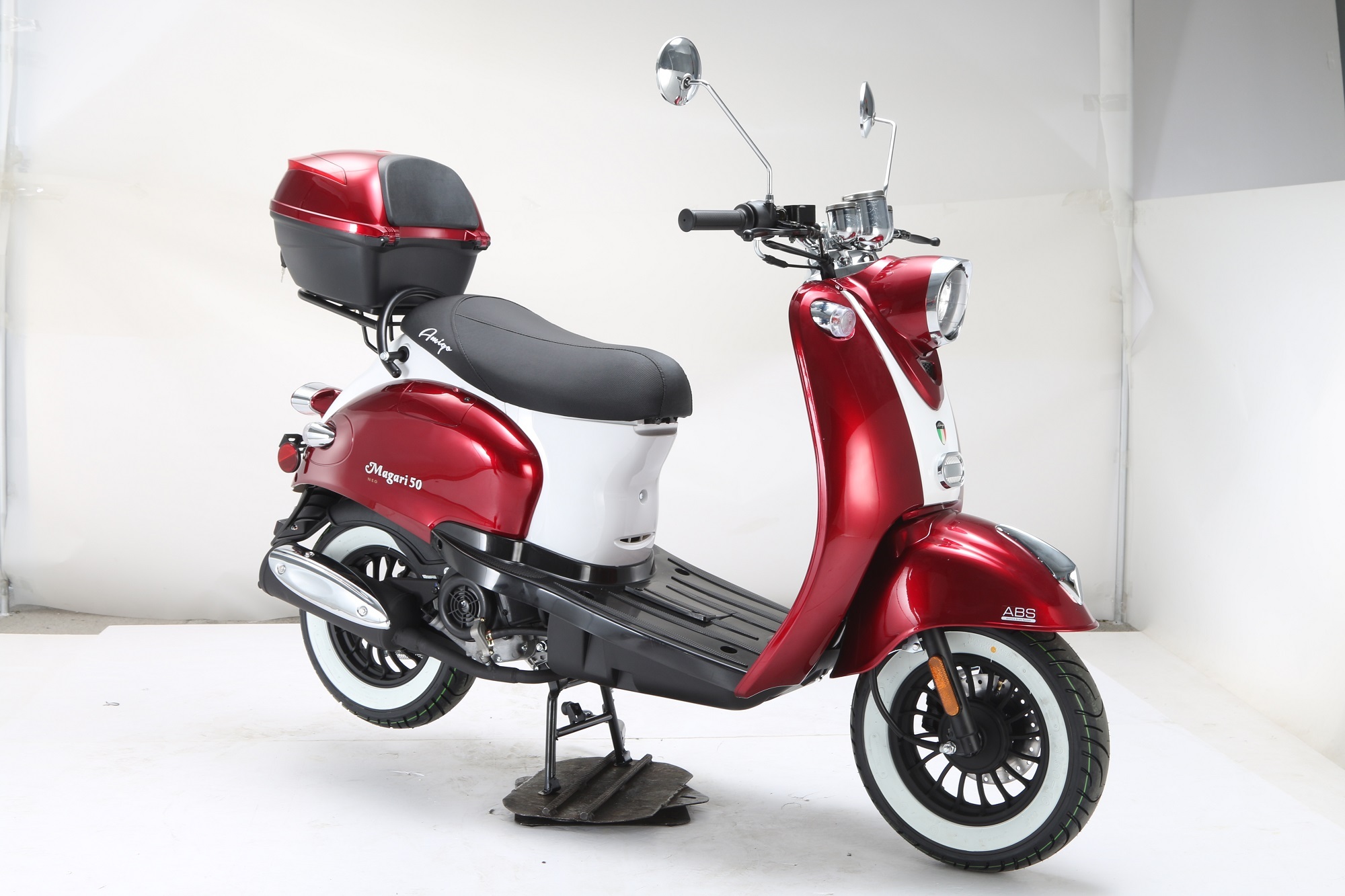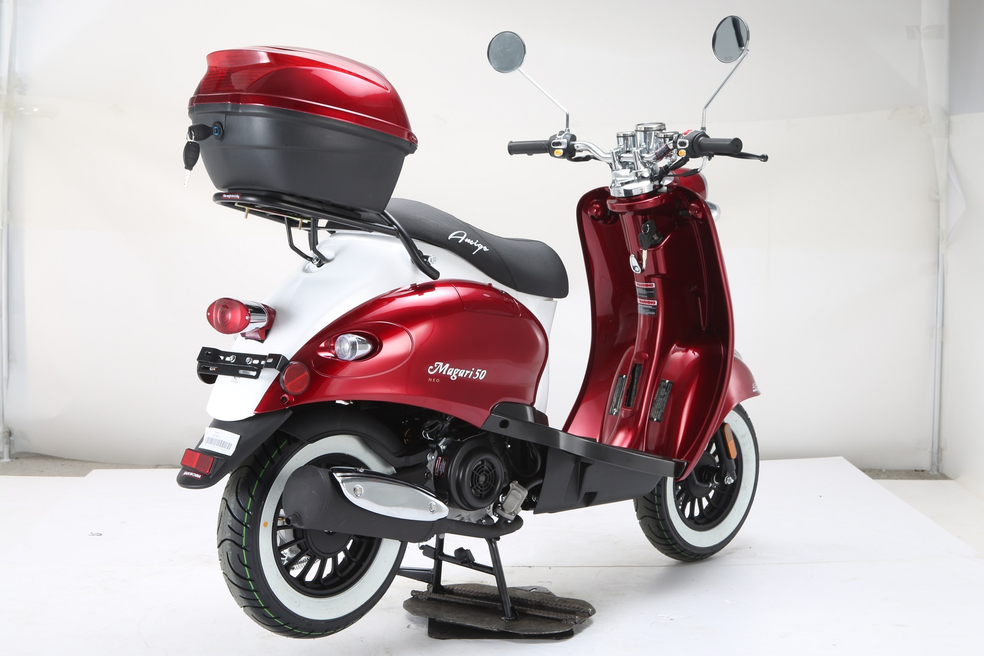 The Amigo Magari-50 SA is a 49cc moped, boasting a 4-stroke single-cylinder engine. It's CA approved and delivers efficient travel, perfect for city commutes, with an impressive 30-35 word description.