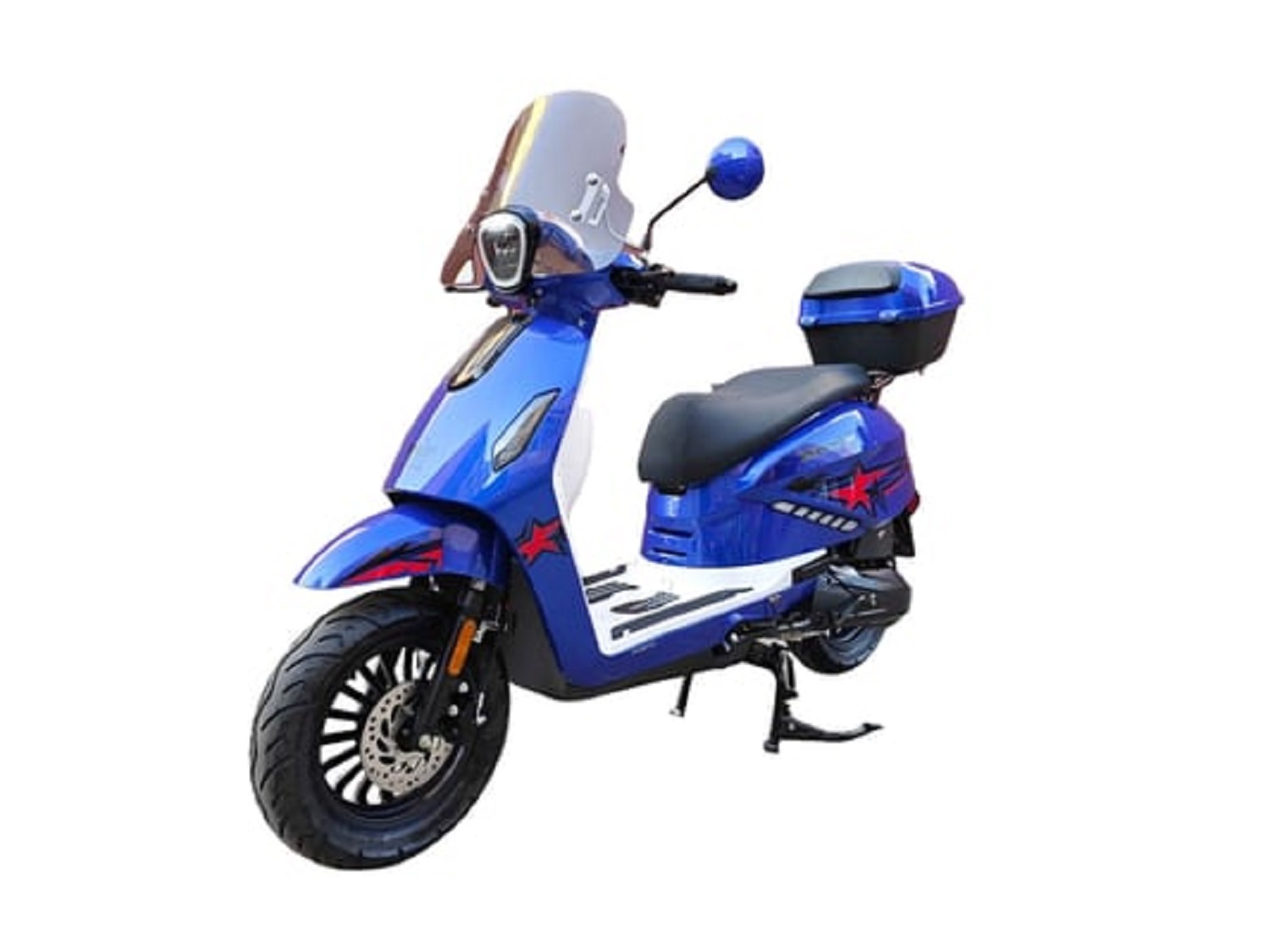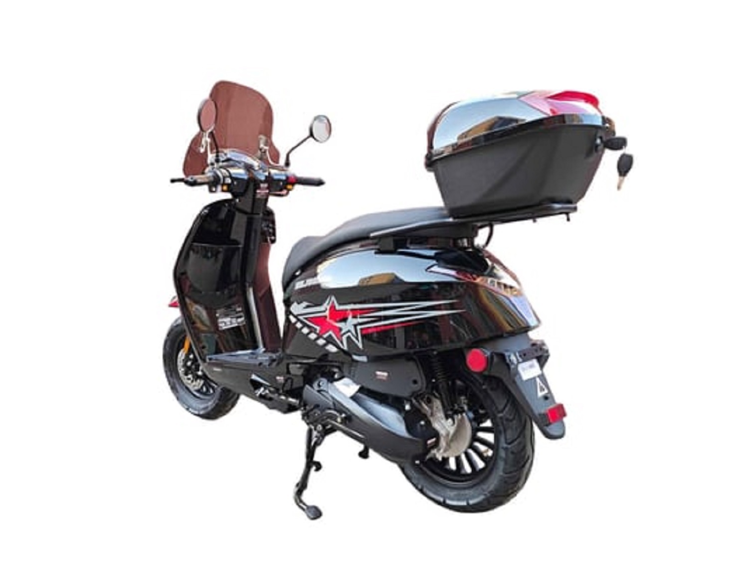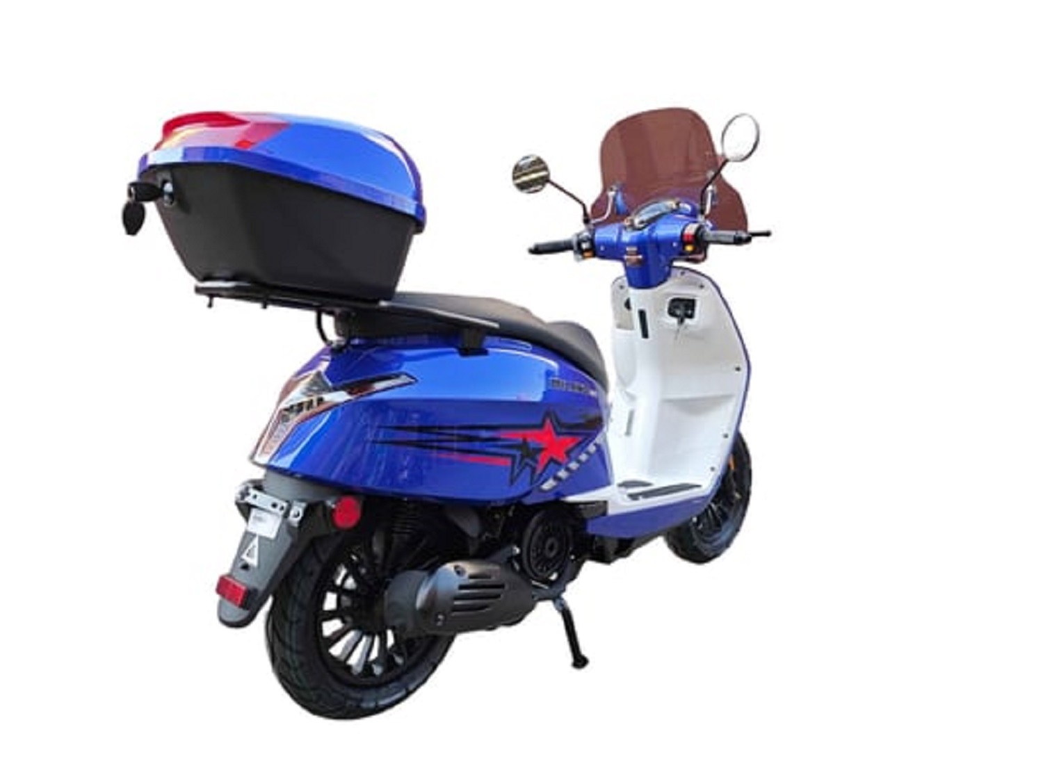 This scooter is packed with convenient features including a USB charging port, windshield, rear storage box, built-in alarm system, and MP3 speaker system, making rides more enjoyable and practical.