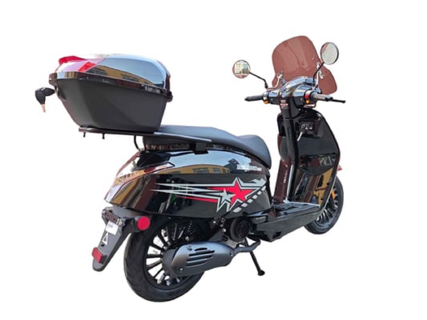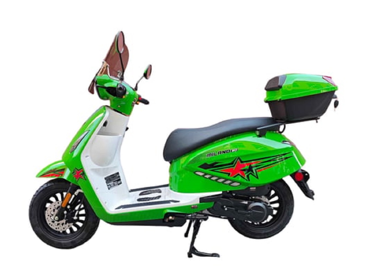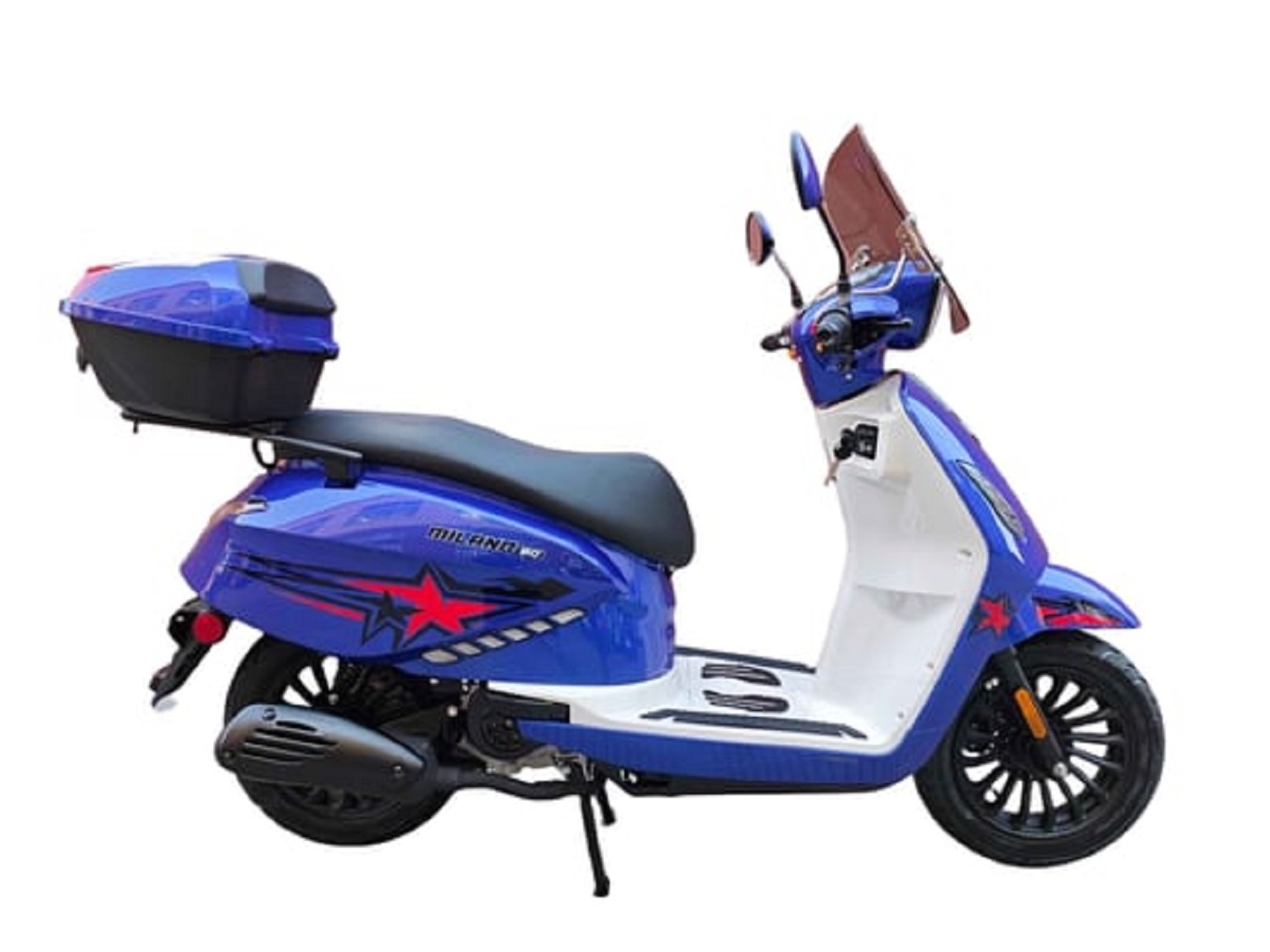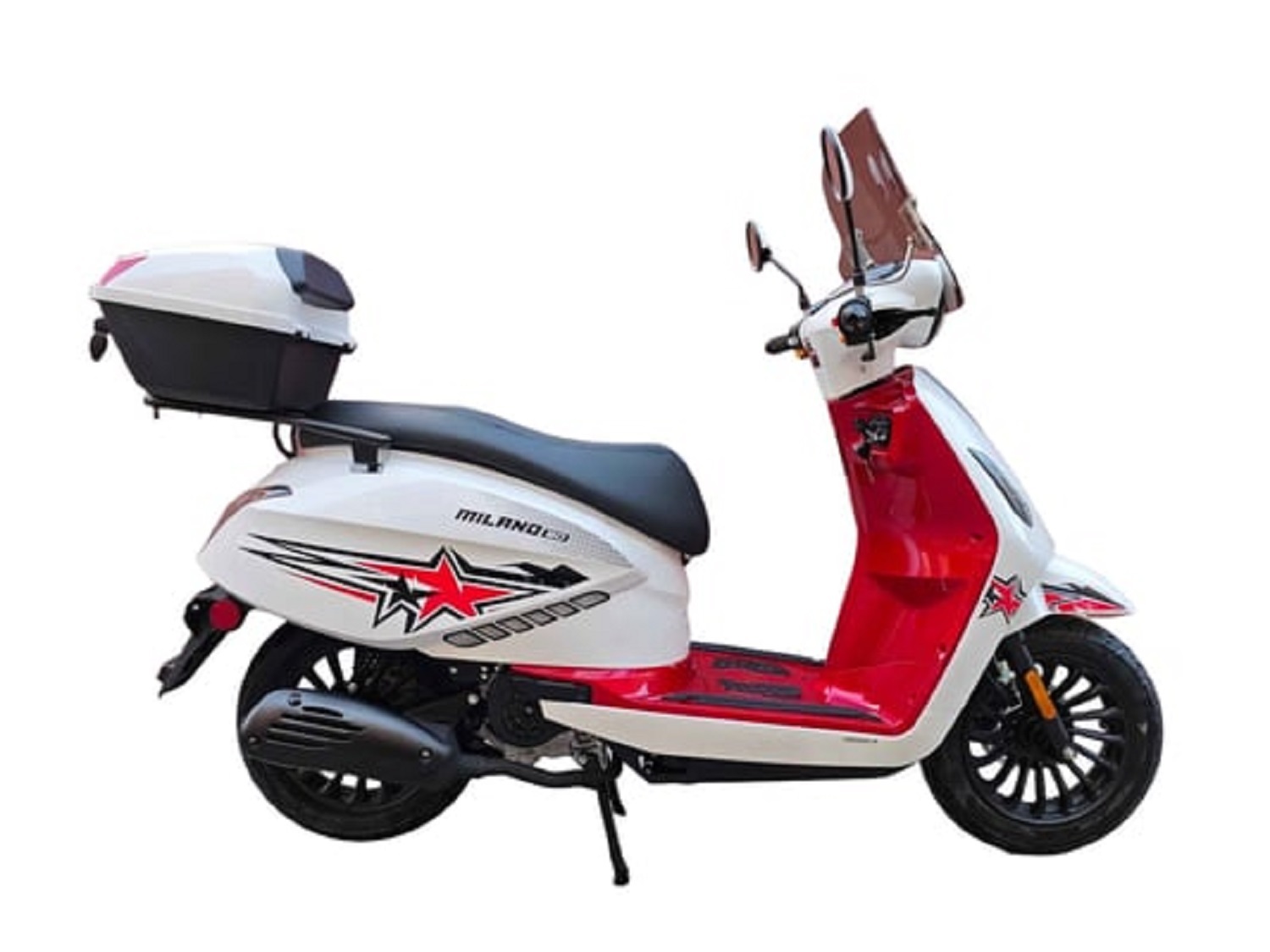 The Milano 50 is equipped with convenient features such as a USB charging port, rear storage box, windshield, built-in alarm system, and MP3 speaker system, making every ride more enjoyable and practical.